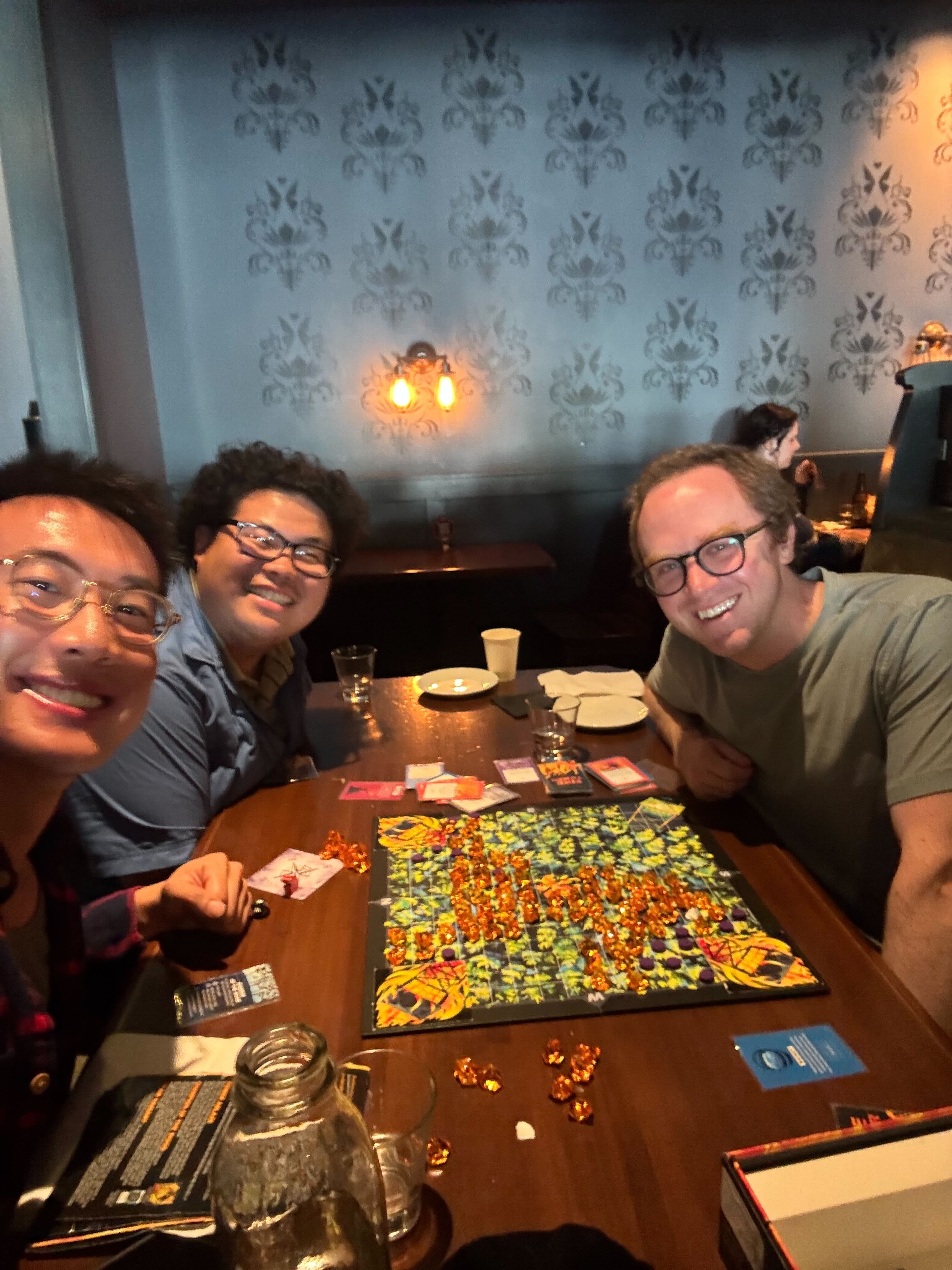 2025 Board Games. Left to right: Eric Mei, James Yoon, and Alex Turner.
